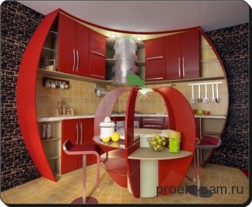 Корпусную мебель можно расставить так, что сконструированный вами кухонный гарнитур задействует в помещении самые неудобные и недоступные его уголки или выступы, а всё необходимое будет находиться в удобном для вас расположении. То есть вы сможете организовать кухонное пространство по своему усмотрению.