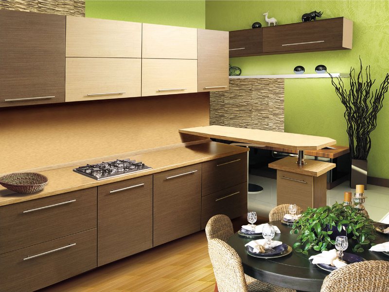 Важно и то, что при необходимости, любая часть кухонного гарнитура может быть переставлена по-другому, и для этих целей отдельные элементы кухонной мебели имеют надёжные соединения