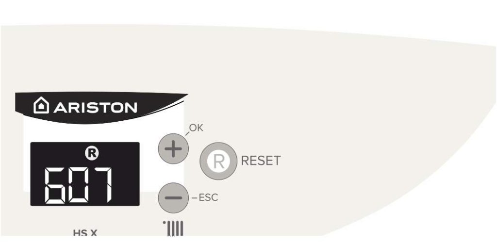 Традиционно практикуемый сброс при ошибке 607 котла Аристон не поможет. Об этом же говорится в таблице неисправностей (Руководство пользователя).