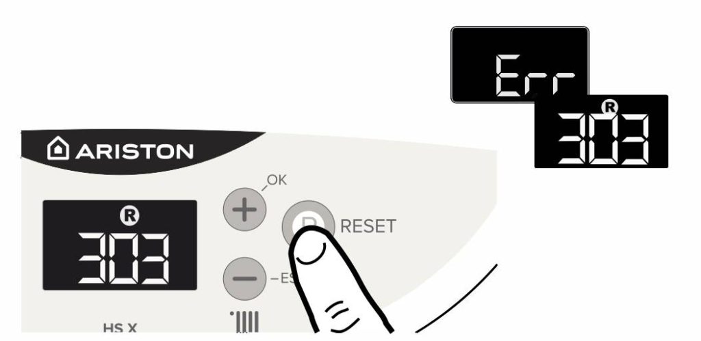 Нажмите на кнопку Reset для сброса ошибки 303 на панели управления котлом Аристон