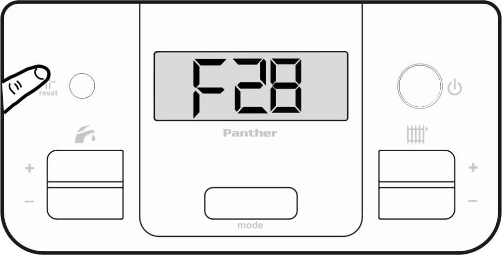 Сбросьте ошибку F28 на панели управления котлом Protherm