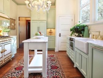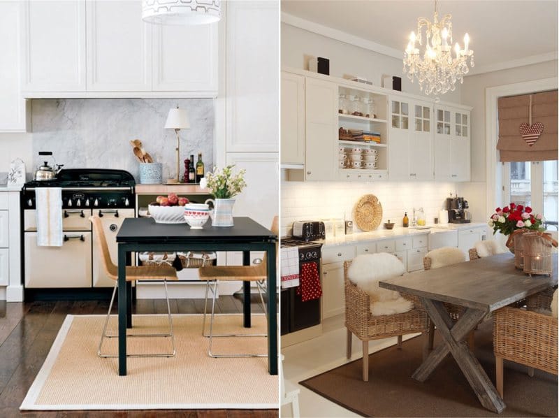 - если кухня узкая и длинная, коврики тоже можно положить удлиненные;