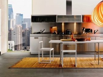 Некоторые хозяйки считают, что ковер в кухонной комнате – лишняя вещь, которая мешает работе и организации пространства. Это мнение ошибочно: современные ковровые изделия на кухню являются функциональными элементами интерьера помещения. В зависимости от разновидности, они выполняют несколько функций: