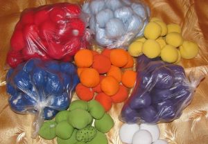 Готовят помпоны разных цветов в необходимом количестве. Раскладывают их по пакетам, чтобы впоследствии было удобно создавать рисунок. |