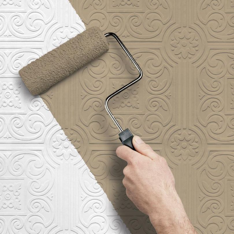 Для окраски обоев линкруста лучше всего использовать велюровый валик. Хорошо подойдет и махровый, но только с ворсом среднего размера. Краску наносите сверху вниз.