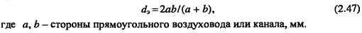 Для прямоугольных воздухопроводов расчетной величиной принимается эквивалентный диаметр.