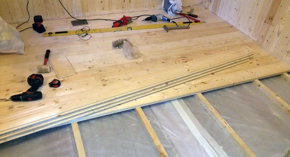 Монтаж дощатого пола на лаги