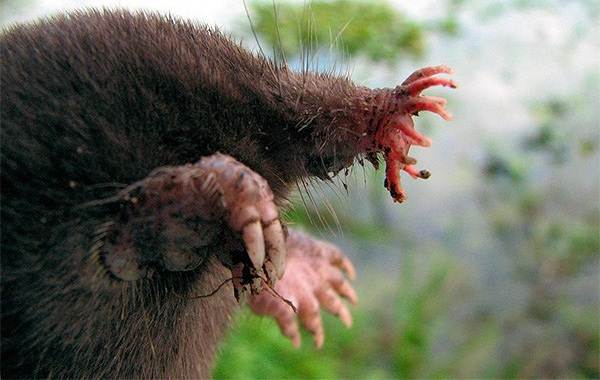 Передние конечности имеют пять пальцев, и они-то и являются приспособлением для рытья земли. Их внешний вид напоминает лопату, особенно если повернуть «ладошками» вверх. Задние лапки тоже имеют по пять пальцев, но они гораздо менее развиты, чем передние.