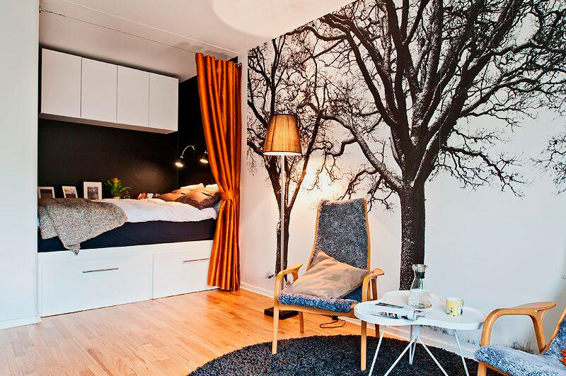 Владельцы квартир-студий также часто заинтересованы в том, чтобы выделить отдельное место для сна.