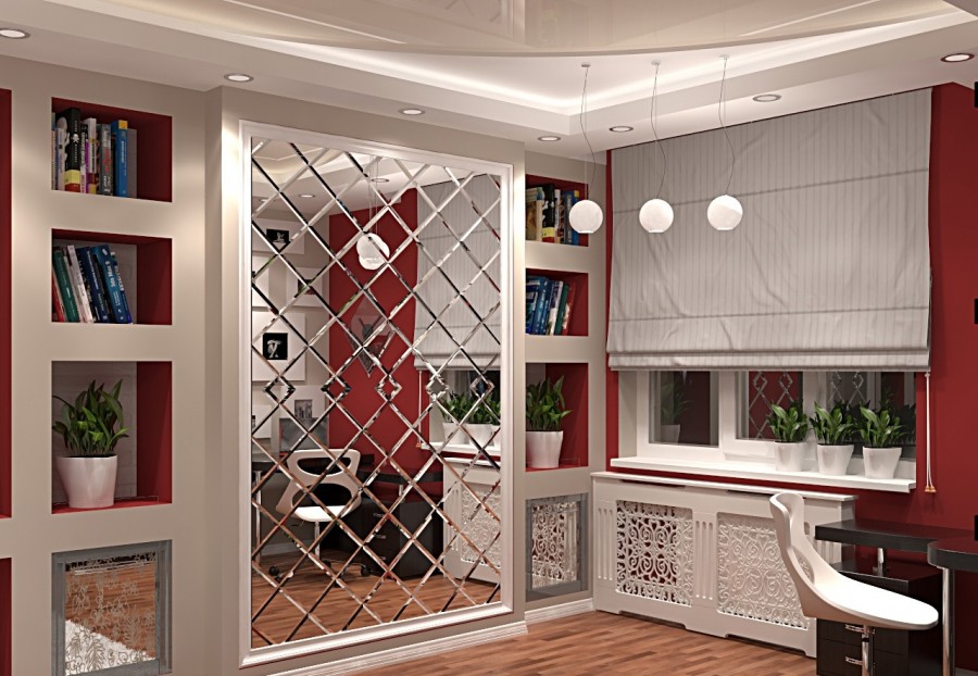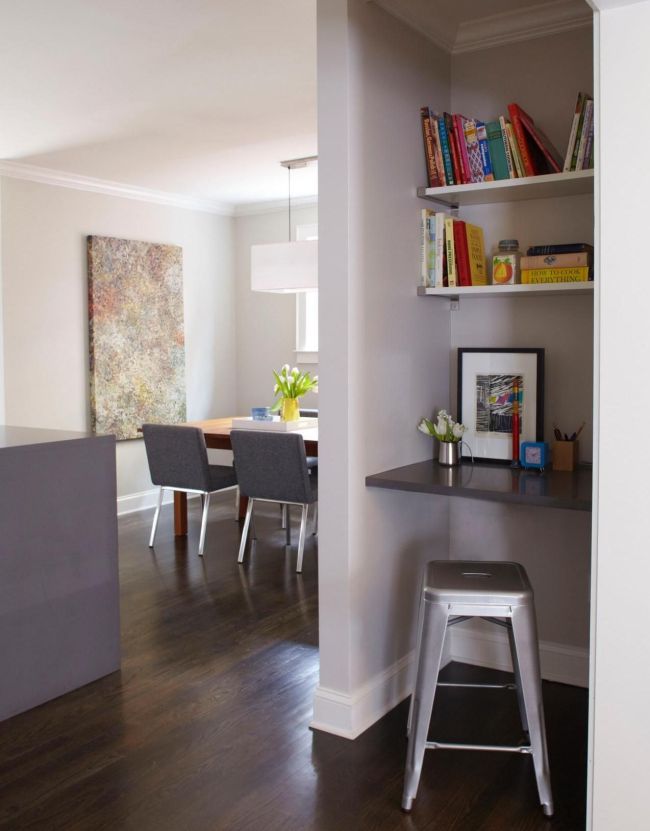 Когда в квартире проживает двое, к примеру, пара, ниша может стать либо местом отдыха для двоих – с диванчиком и книжным шкафом или телевизором на стене, либо, наоборот, местом для уединения одного человека – подобием кабинета для работы. Такой импровизированный кабинет востребован, если хозяева нуждаются в организации полноценного рабочего места в квартире. В случае если оба жильца фрилансеры, и их место работы преимущественно находится дома, можно зонировать рабочее место для каждого в соответствии с характером его деятельности. К примеру, один – юрист, второй – веб-программист, соответственно, оба нуждаются в отдельных компьютерах, при этом одному необходим письменный стол для работы с бумагами, другому – место для разных компьютерных аксессуаров.