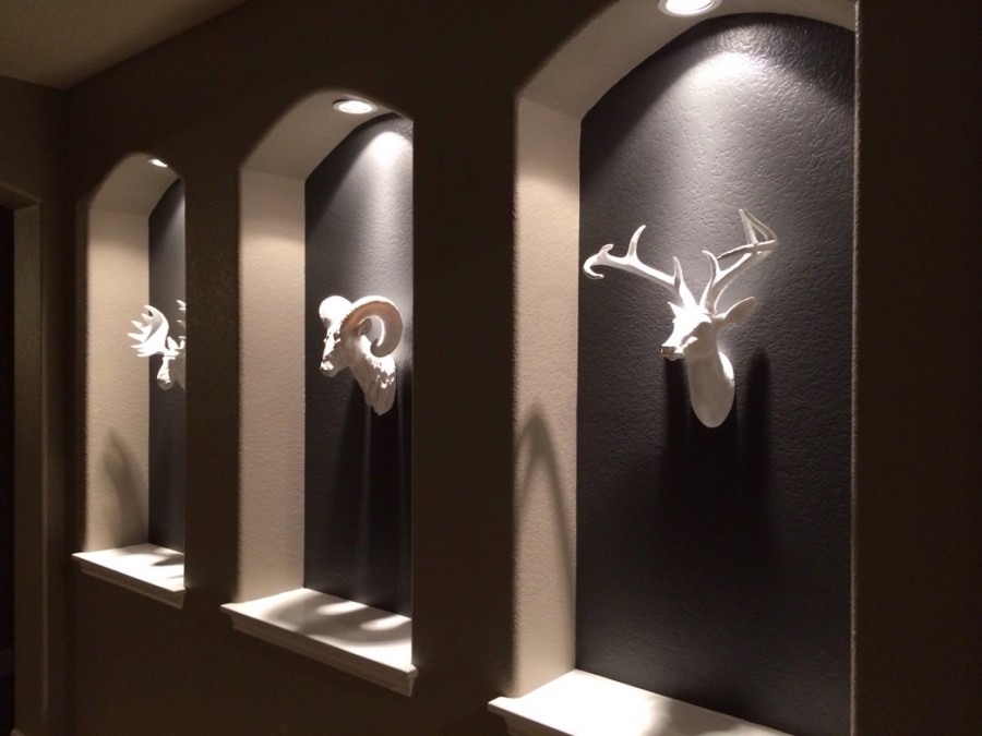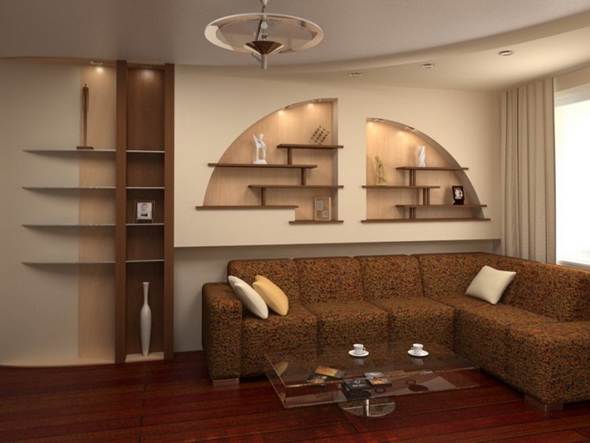Небольшие выемки могут выполнять функцию книжного шкафа или полок для посуды. Декоративные ниши обычно располагают в самых заметных местах, на которых задерживается взгляд. Большое преимущество таких углублений заключается в том, что вы можете часто видоизменять их, перекрашивая, обклеивая, обшивая и дополняя различными элементами.