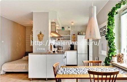 - Оформление отдельной комнаты малышу. Для этого подойдет кухня. Приготовление пищи выполняется в гостиной или на лоджию.
