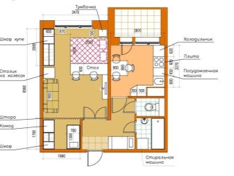 Второй вариант планировки непрост в процессе обустройства. Реализовать многие дизайнерские решения на скудных квадратных метрах достаточно сложно. На них необходимо поместить мебель, и сохранить свободное пространство для удобного передвижения. Главное требование к жилью заключается в комфортабельности.
