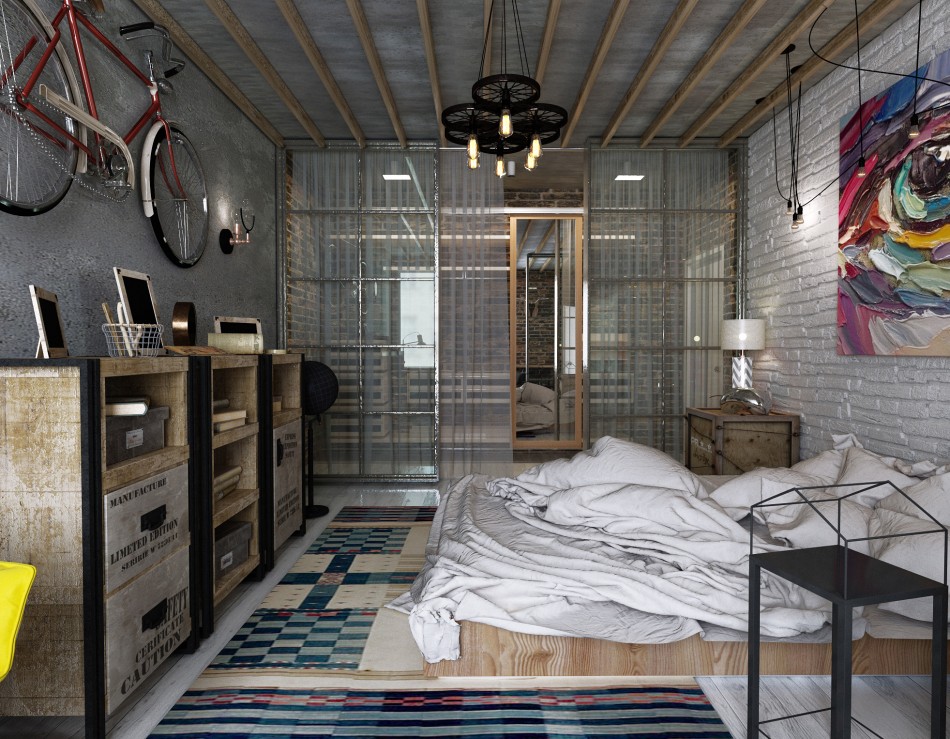 Второй вариант, когда обычные жилые комнаты стилизуют под нежилые. Отделка помещения может напомнить складское помещение.