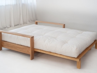 - Дизайн. Лаконичное оформление – прямоугольный каркас с удобным матрасом. Конструкция располагается на невысоких ножках или вовсе их лишена. Для обивки обычно применяются однотонные материалы;