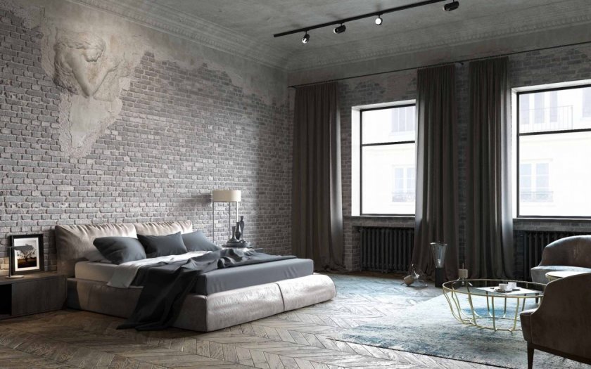 Спальня, выполненная в классическом стиле лофт мало кому покажется уютной и притягательной.