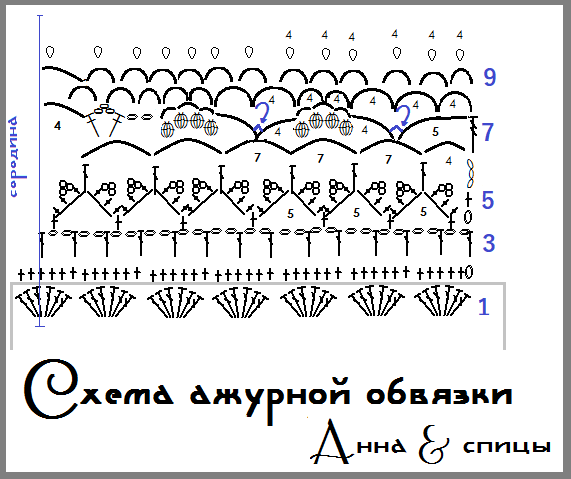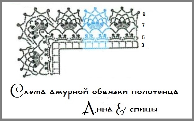 Когда я вязала первое полотенце (белое с белой каймой) оно было немного уже и получилось 10 арок, поэтому я применила оригинальную схему и не мучилась.