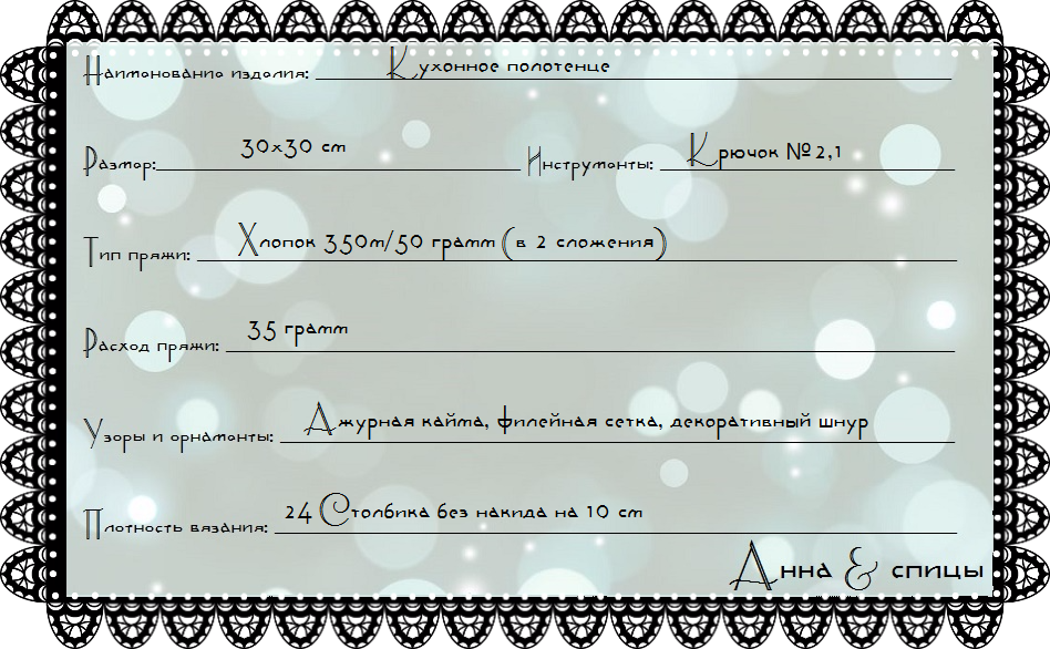 Когда изделие делается для себя, можно выбирать любые материалы и цвета, но если нужно обвязать полотенце в подарок, я бы рекомендовала какие-нибудь нейтральные узоры и оттенки пряжи.