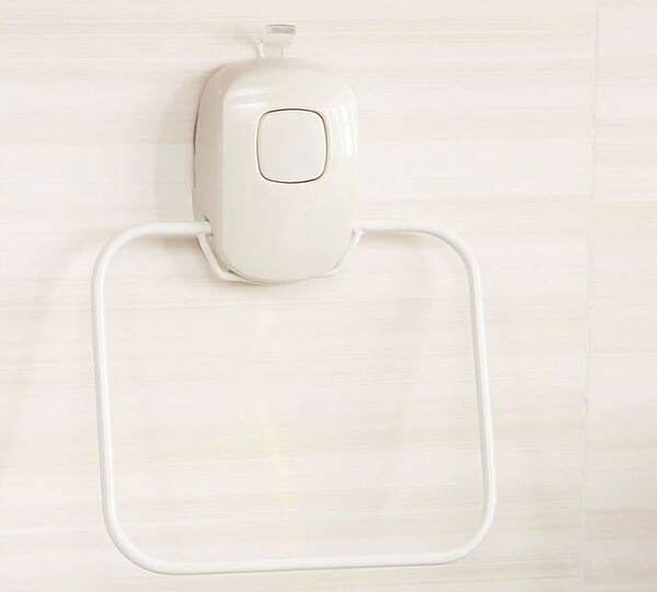 Отлично подойдет для тех, кто не желает нарушать целостность стены. Отлично подойдут в преддушевую зону (там, где не слишком большая влажность). Но рекомендовать такие держатели нельзя, так как для большого полотенца – даже сухого – они слабоваты.