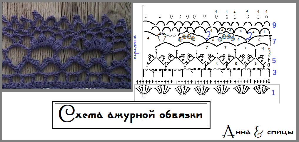 При работе с фиолетовой каймой, пришлось выкручиваться. Я разработала собственную схему.