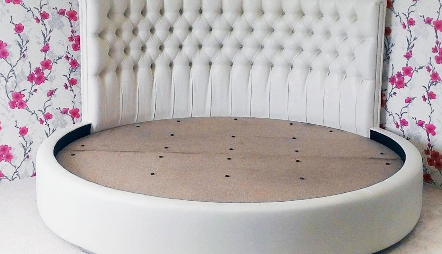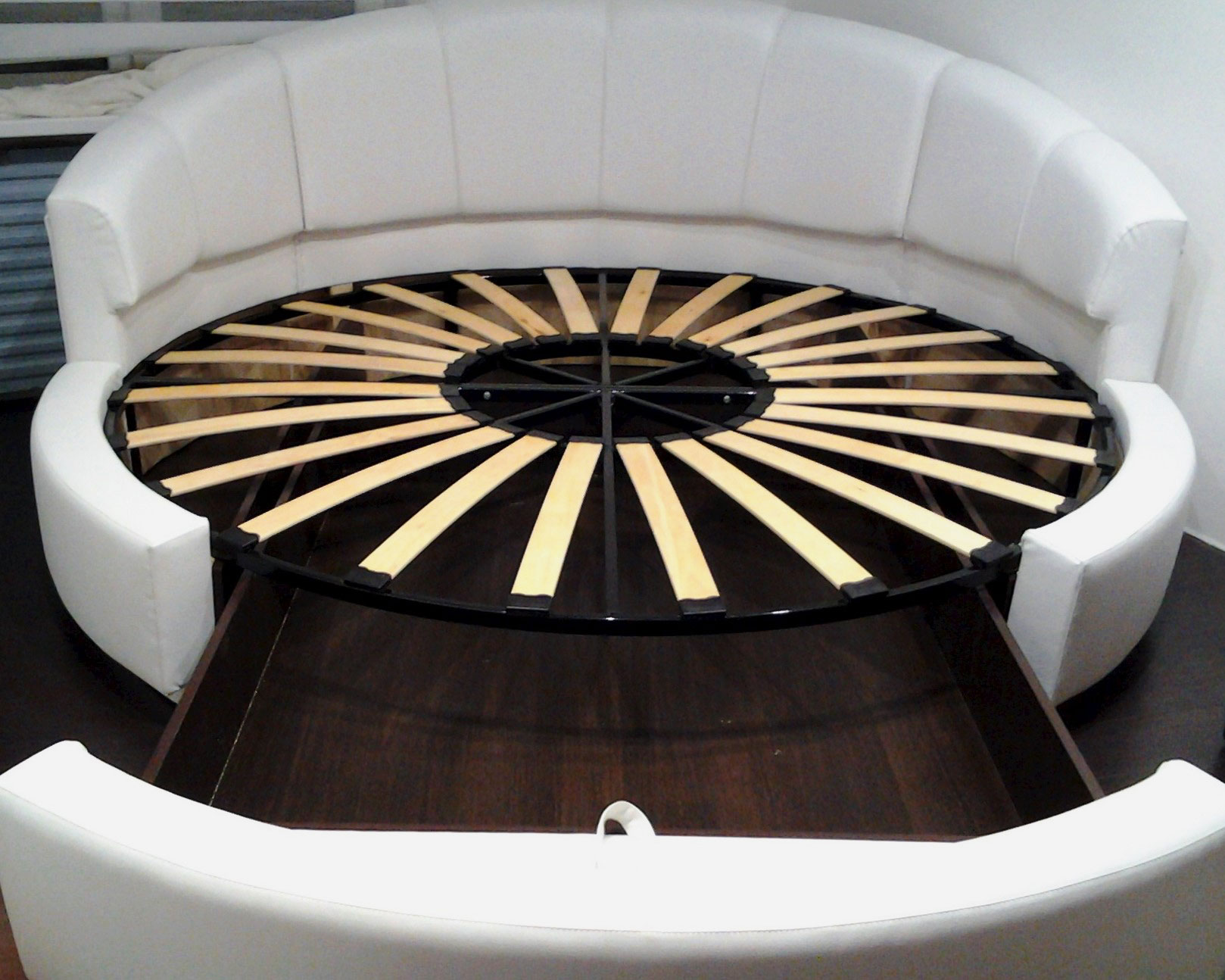 Основание круглой спальной мебели, куда укладывается матрас, может быть 3-х видов.