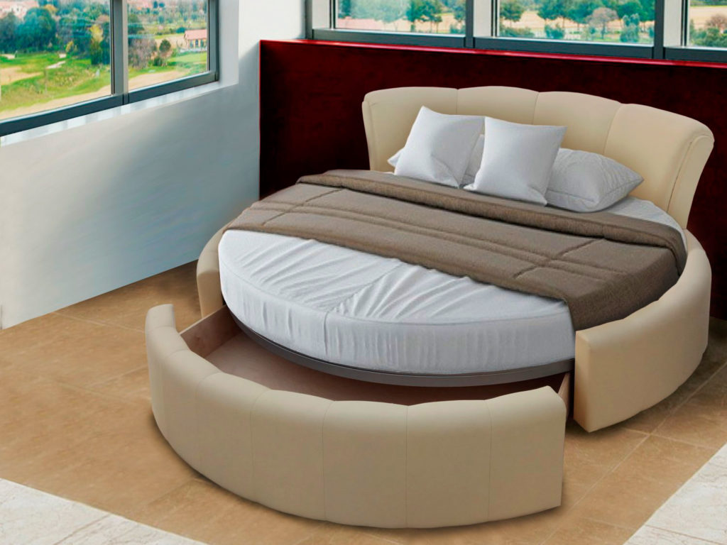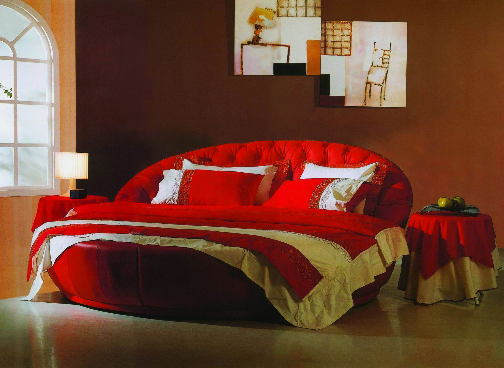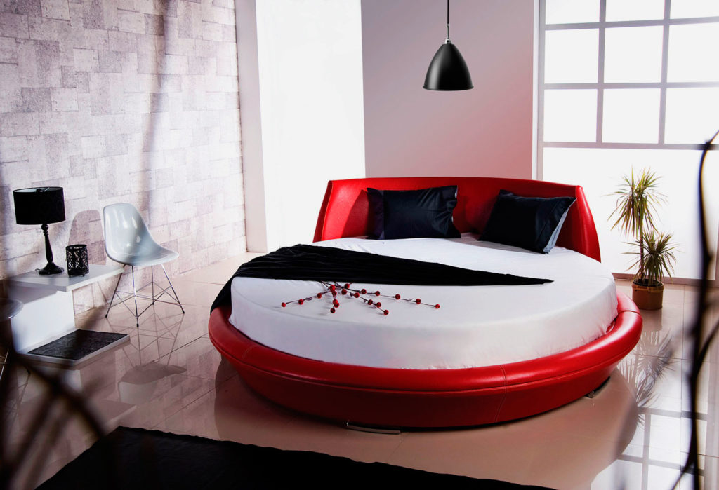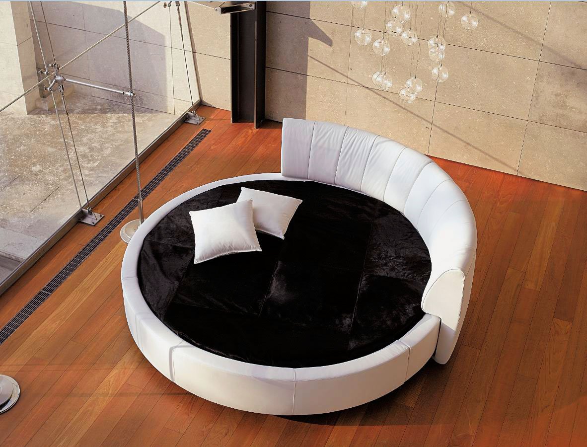 Круглые кровати могут похвастаться довольно широким модельным рядом. Разнообразные материалы обивки, различные цветовые решения, конструктивные особенности кроватей круглой формы позволяют создавать неповторимые интерьеры на любой вкус.