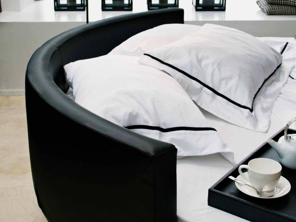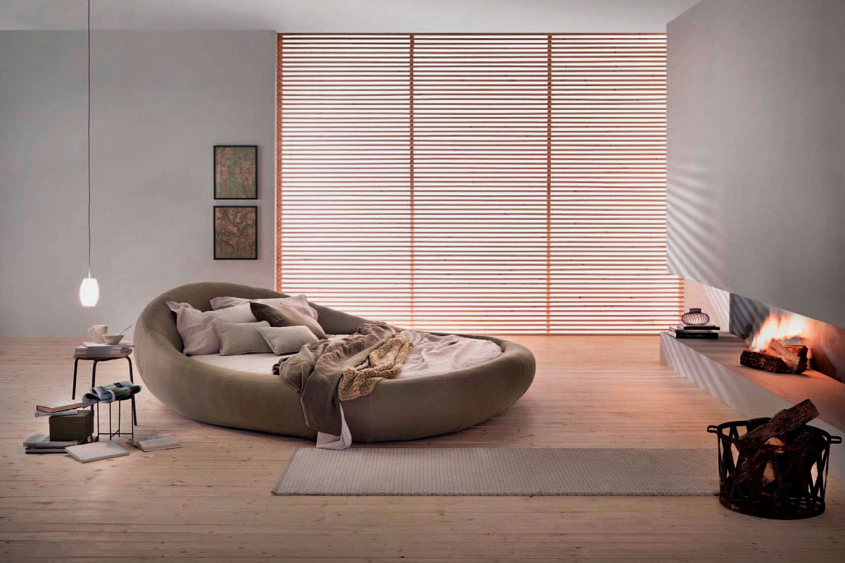 Если в вашей комнате одна из стен выполнена в форме вогнутого фрагмента окружности, это помещение просто создано для круглой кровати – к полукруглой стене она станет идеально.