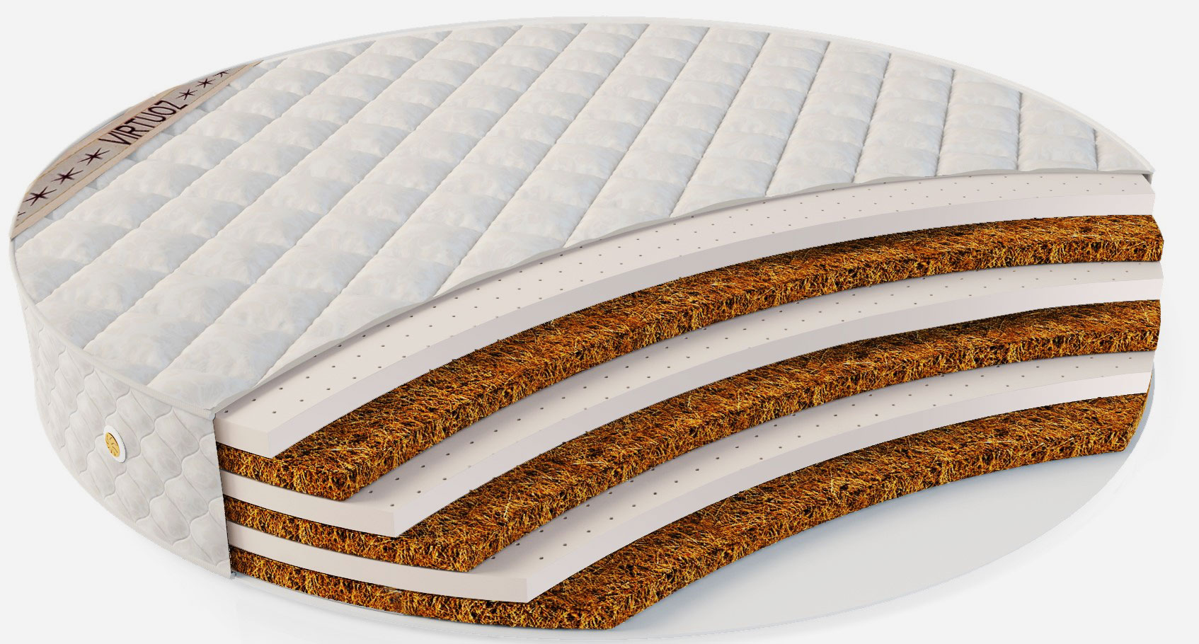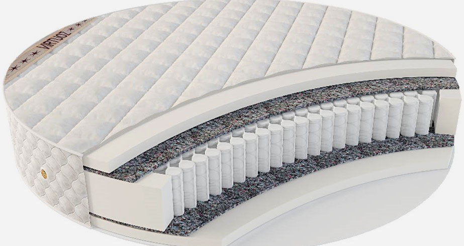 Круглые модели обычно больше по размеру, чем стационарные обычные кровати. Так, для односпального места оптимальный диаметр матраса – 2 м, а для двуспального – начиная от 2,5 м и более.