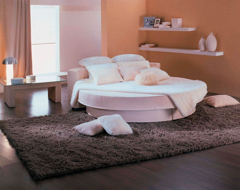 Двуспальная круглая кровать потребует большой спальни. Если вы хотите купить такую кровать не забывайте об этом.