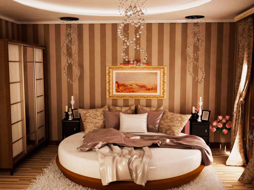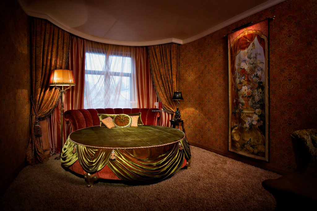 Современные модели мебели позволяют воплощать в реальность самые смелые идеи по обустройству спален. Все что необходимо – проявить фантазию и выбрать стиль комнаты, круглая кровать в которой станет незаменимым атрибутом.