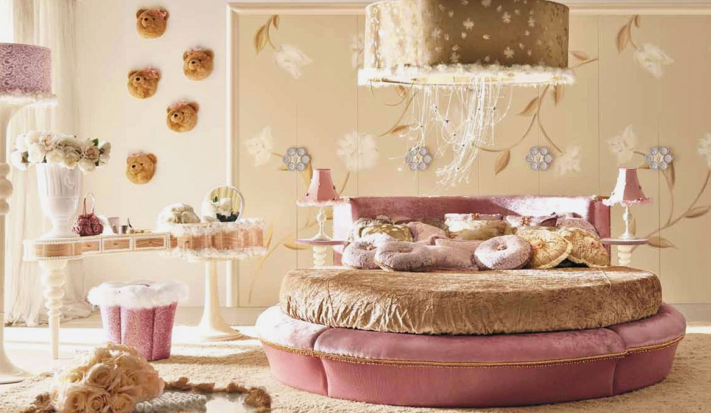 Не стоит думать, что круглая кровать подходит только для взрослой спальни. Также она отлично смотрится в детской комнате. Применив чуточку фантазии можно организовать ребёнку сказку наяву.