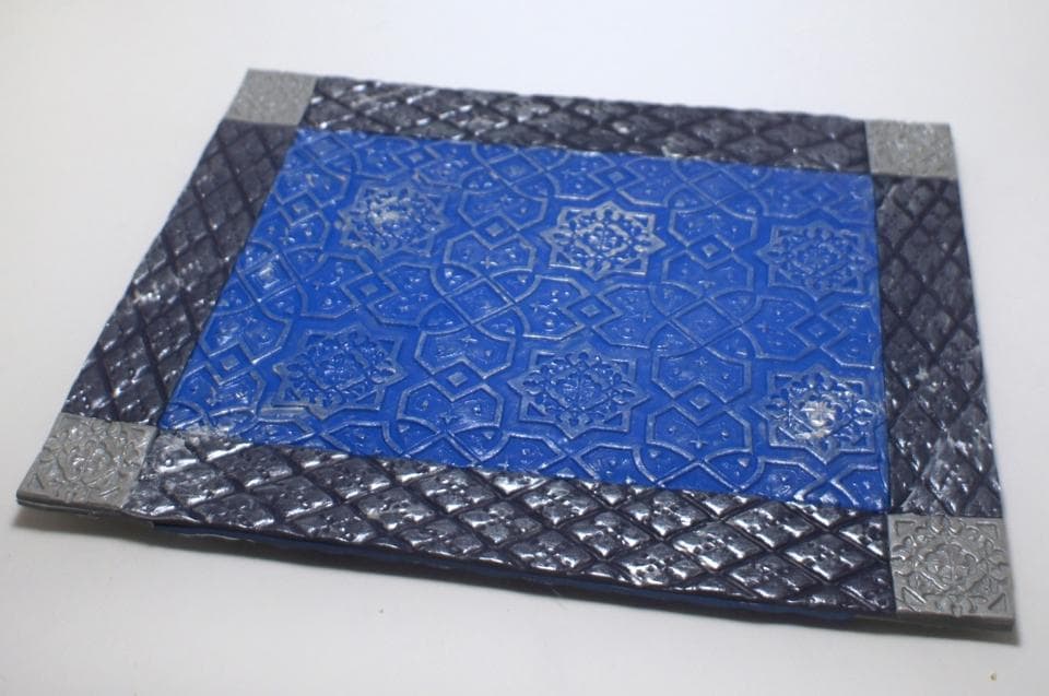 После того, как достигли нужного результата, берем текстурный лист и переносим рисунок на глину.