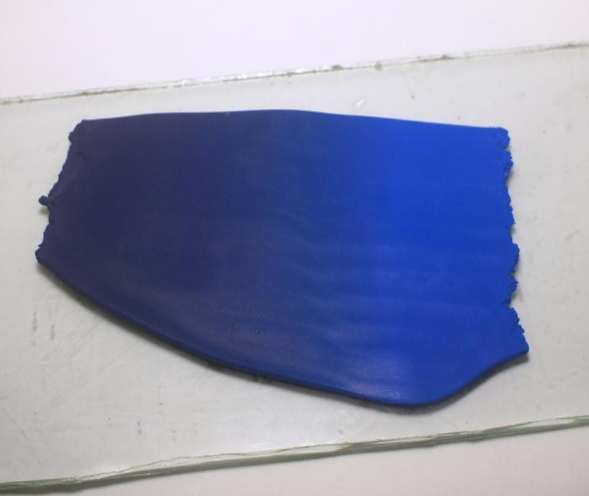 Берем еще один кусок полимерной глины, раскатываем и переносим текстурный рисунок. Кладем поверх первой ножки и обрезаем лишние детали. Запекаем детали по инструкции производителя глины.