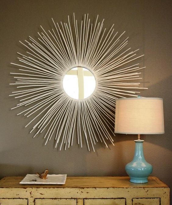 Кстати, делать такую раму для зеркала можно не только с веточек, но и с деревянных шпажек и даже из бумаги.