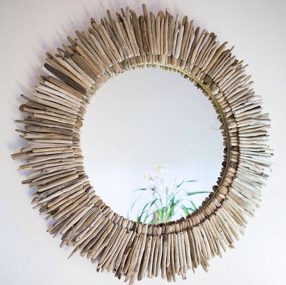 Потрясающе красиво смотрятся зеркала с рамками из более крупных веток или даже из кусочков коры.