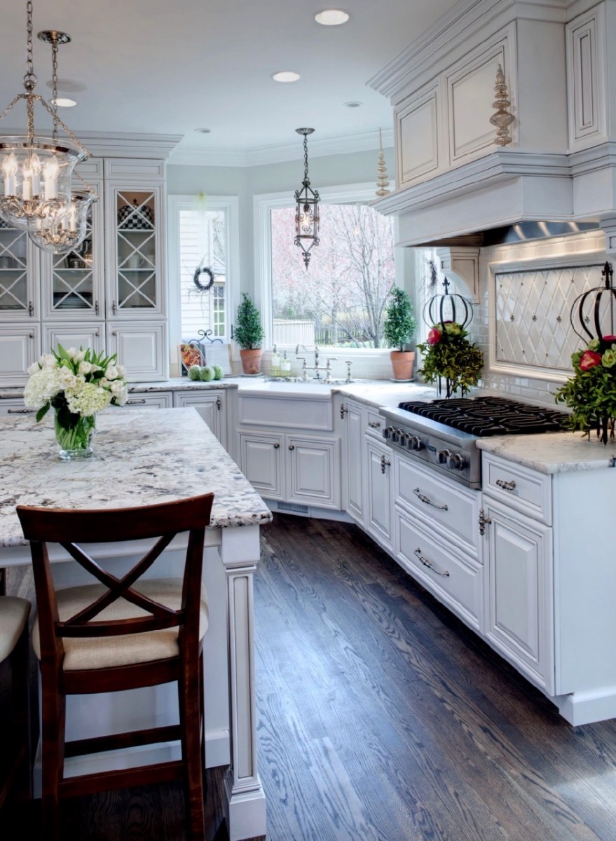 Отличный вариант для любой кухни размещение мебели в виде буквы Г. Такая расстановка мебели высвобождает достаточно места для обеденной зоны.