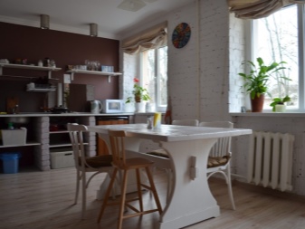 Просторную кухню-студию на 17 квадратах, фото, дизайн которой представлены на сайте, можно оборудовать островом. Этот многофункциональный блок является одновременно и обеденным столом, и барной стойкой, и местом для приготовления пищи. Он очень подходит интерьерам в стиле лофт, которые совмещают домашний уют и с атмосферой улицы.