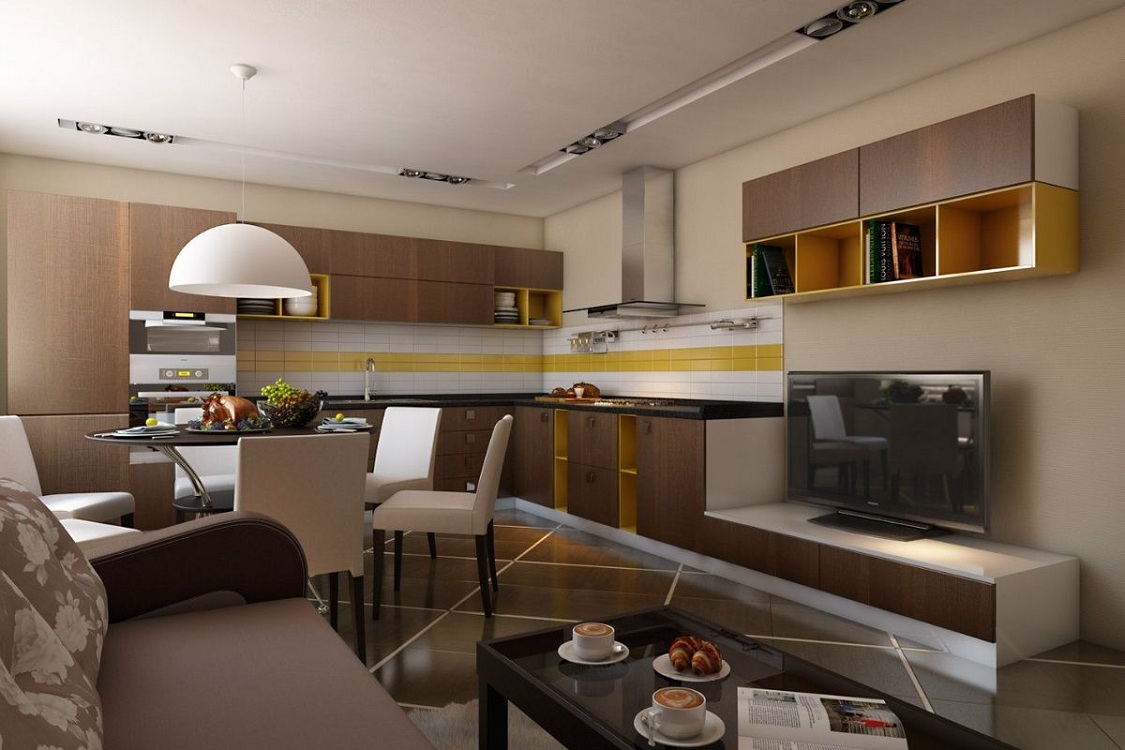 Современная кухня-гостиная: зонирование пространства