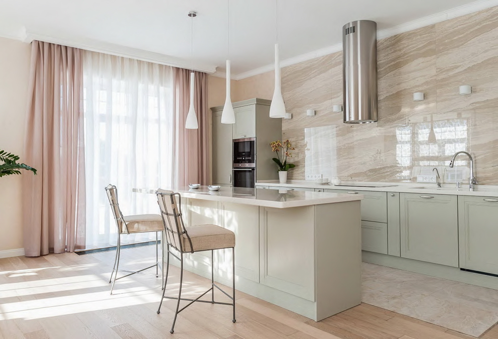 - Зоны кухни и отдыха принципиально отличаются по функционалу, эстетике и требованиям санитарии, объединить их так, чтобы было красиво и рационально – задача непростая.