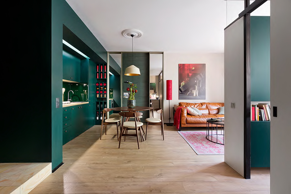 - Квартира достаточно большая, и у каждого члена семьи есть своя отдельная комната. Объединение кухни и гостиной кажется логичным.