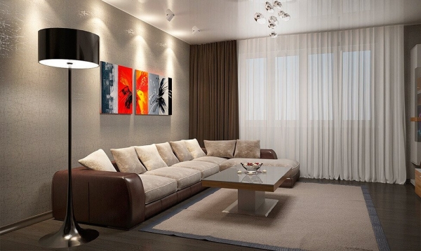 Кофейный в гостиной можно сочетать и с , особенно если окна выходит на менее освещенную часть улицы.