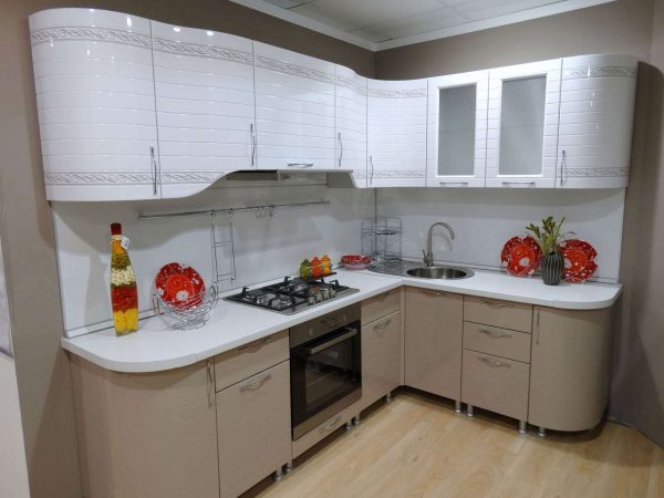 Очень красивый цвет капучино органично сочетается с белым цветом на кухне