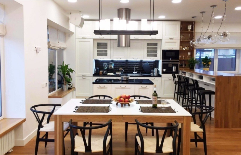Функциональная мебель предназначена для хозяек, которые все основное время проводят на кухне и готовят сложные блюда. Здесь требуется максимальная практичность и эргономичность пространства. Все необходимое находится на расстоянии вытянутой руки. Шкафы вместительны и рассчитаны на большой объем запасов. Такая мебель подойдет для большой семьи. Она позволяет комфортно проводить время на кухне и без труда размещает всех членов семьи.