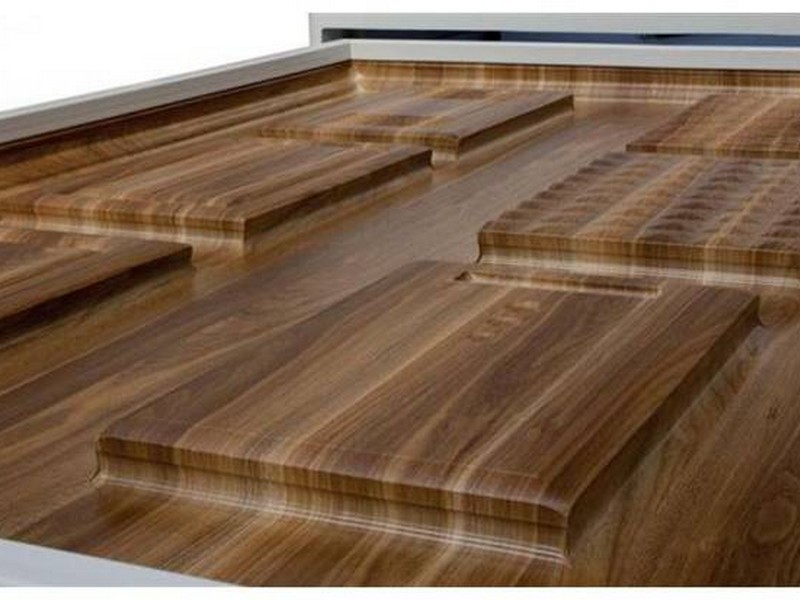 Древесина – хороший вариант для изготовления кухонных гарнитуров, в том числе и столешниц, но не дешевый. В зависимости от вида дерева гарнитур будет иметь только ему свойственный цвет, рисунок. Чаще всего мебель для кухни изготавливают из сосны, ели, лиственницы, березы, дуба.