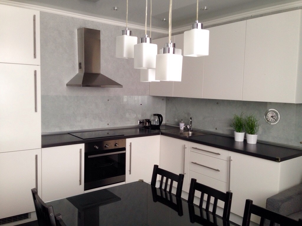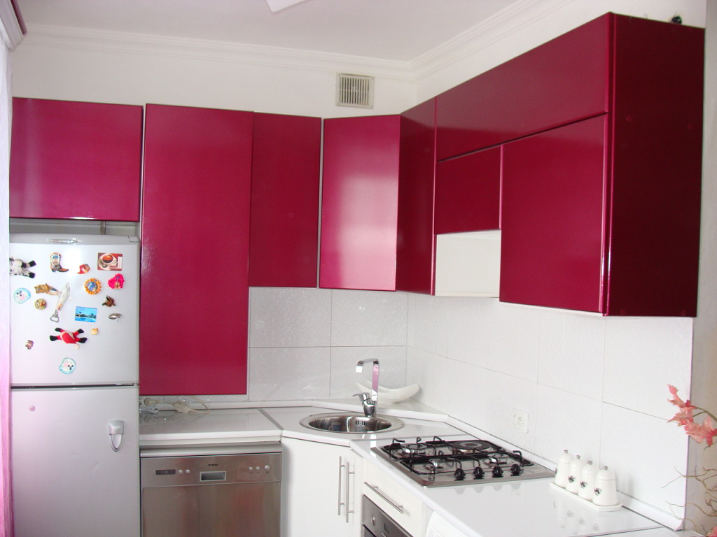 - При выборе фасада и столешницы гарнитура остановитесь на глянцевых поверхностях – они отражают свет, что сделает помещение визуально просторнее.