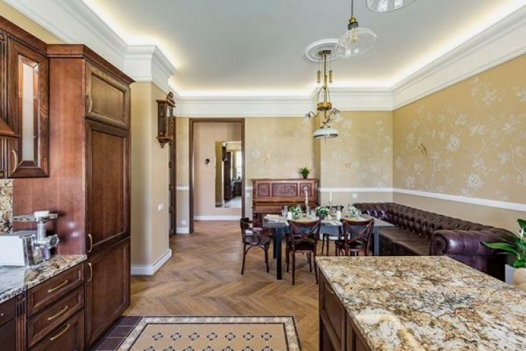 Карамельная кухня-гостиная для покорителей горных вершин 0+