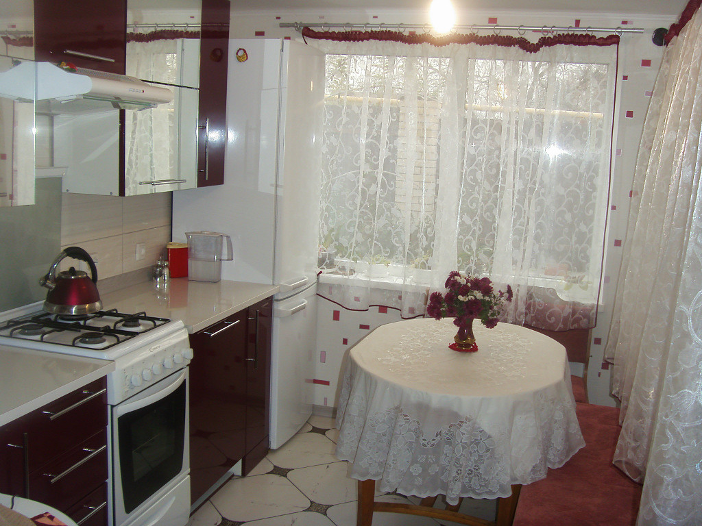 - Для яркой кухни выбирайте менее яркие шторы, иначе у ваших гостей и домашних будет пестрить в глазах.