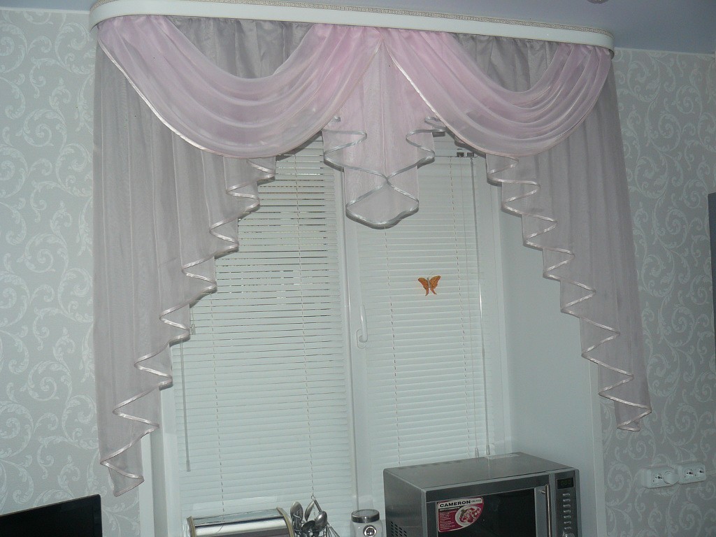 Какая форма предпочтительнее для кухни? Для маленькой кухни, конечно, простая. Так как здесь текстиль стирается гораздо чаще, чем в других комнатах, то использование слишком серьезных конструкций будет сопряжено со сложностями по уходу за ними.