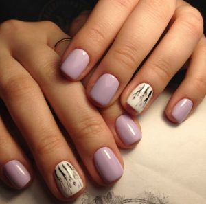 Лавандовый маникюр с дизайном смотрится выигрышно и при создании геометрических узоров. С единственной оговоркой именно к этому типу дизайна является то, что здесь можно сочетать, казалось бы самые не сочетаемые цвета.