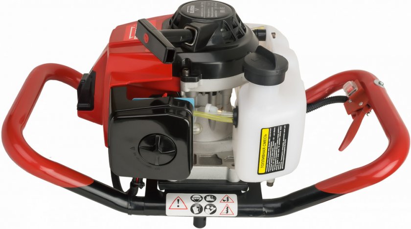 Данный инструмент предназначен не только для бурения льда в зимний период, он также легко справляется с мягкими и твёрдыми грунтами, заслуживая звания универсального оборудования. Устройство имеет фирменный одноцилиндровый бензиновый двигатель, мощностью 3,3 л. с. и объёмом 71 см³. С помощью инструмента можно пробурить достаточно большую лунку или отверстие, диаметром до 30 см.